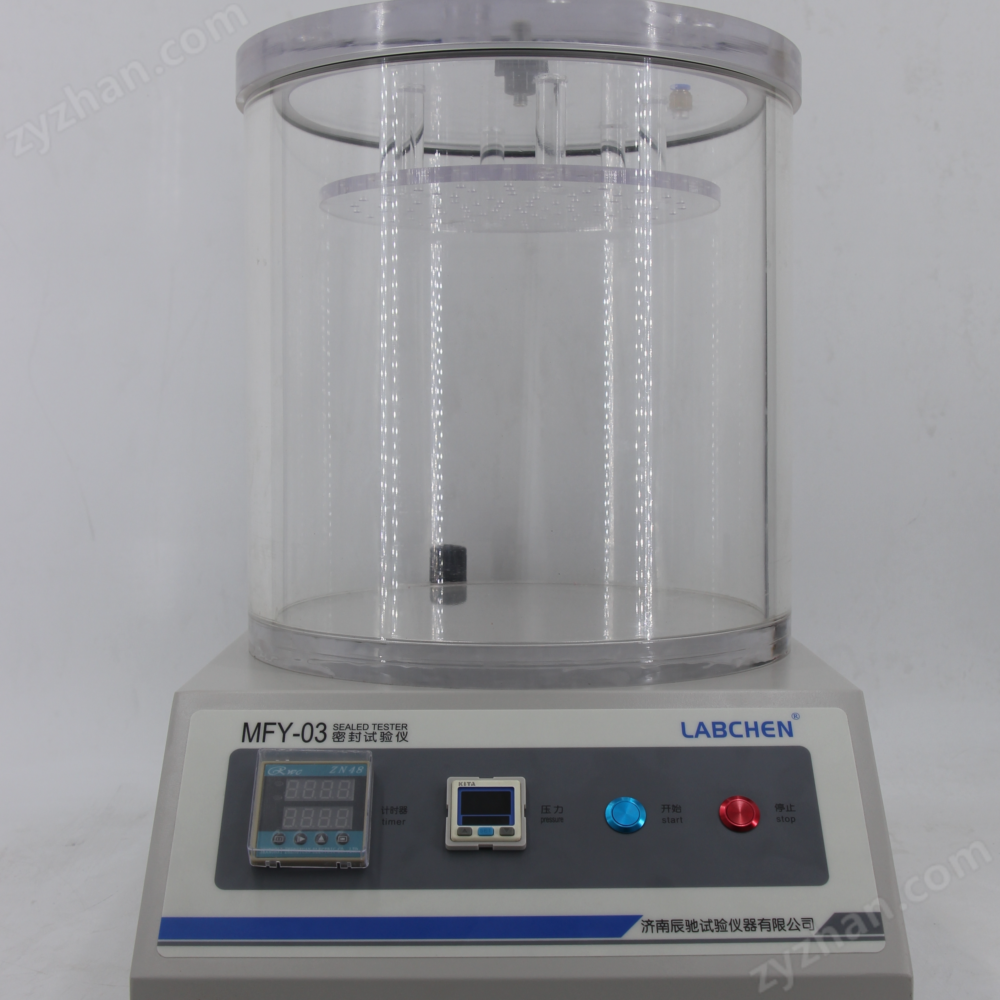 1】通過對真空室抽真空,使浸在水中的試樣產生內外壓差,觀測試樣內氣體外逸情況,以此判定試樣的密封性能;2】通過對真空室抽真空,使試樣產生內外壓差,觀測試樣膨脹及釋放真空后試樣形狀恢復情況,以此判定試樣的密封性能。