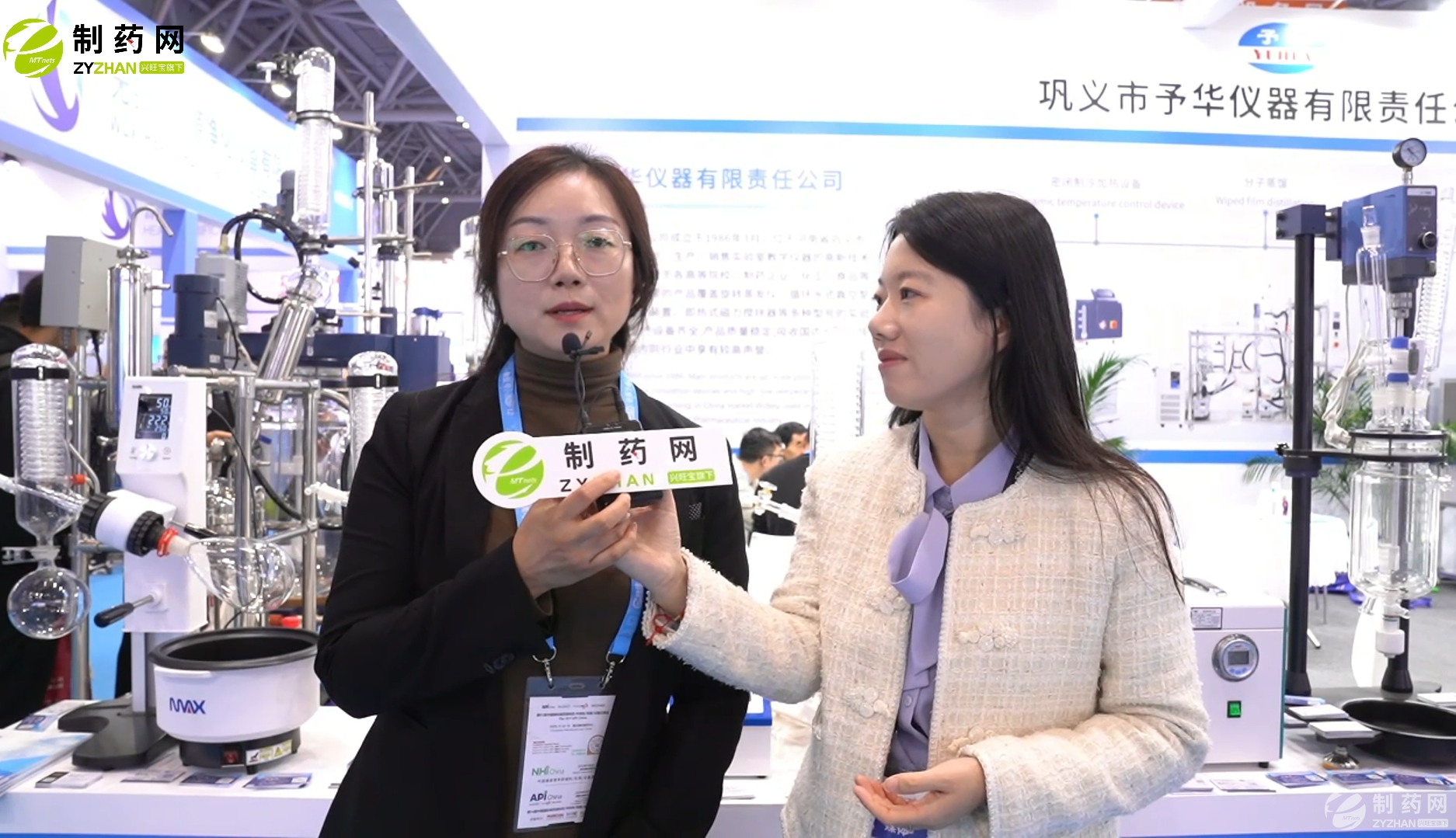 鞏義市予華儀器楊靜雅女士(左)接受制藥網采訪