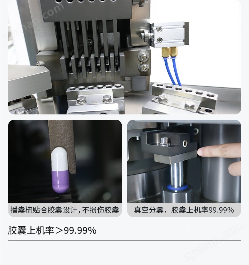 自動膠囊機是我司主打研發的新一代自動膠囊充填機,轉盤充填機構,自動硬膠囊充填機裝量精度誤差≤3%。膠囊填充機可以精確充填自動膠囊填充機無油軸承無污染無需維護,全自動膠囊填充機符合GMP生產要求,硬膠囊填充機特殊材料聚四氟乙烯制作的無油軸承安裝于轉盤的橫向雙軸之中,終身無需加油、無需維護,無污染,使用和維護成本低。機器結構模塊化集成式設計,模具或零部件安裝拆卸拆洗方便快捷,換模具15分鐘即可完成。