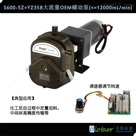 大流量蠕動泵具有雙向同等流量輸送能力,在無液體空運轉情況下不會對泵的任何部件造成損害。同時能產生達98%的真空度,沒有閥、機械密封和填料密封裝置,也就沒有這些產生泄露和維護的因素,能輕松的輸送固、液或氣液混合相流體,允許流體內所含固體直徑達到管狀元件內徑40%,可輸送各種具有研磨、腐蝕、氧敏感特性的物料及各種食品等。僅軟管為需要替換的部件,更換操作簡單,除軟管外,所輸送產品不與任何部件接觸。
